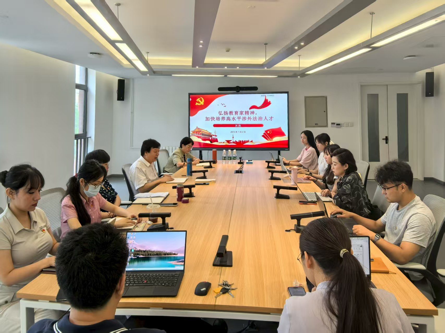 为深入学习贯彻习近平总书记关于教育的重要论述,引导全院师生感悟教育家精神内涵,明确育人使命担当,7月2日上午,澳门十大信誉网赌大全党总支负责人、院长米良以“弘扬教育家精神,加快培养高水平涉外法治人才”为题讲授专题党课。澳门十大信誉网赌大全党总支理论学习中心组全体成员和部分师生党员代表参加学习。
