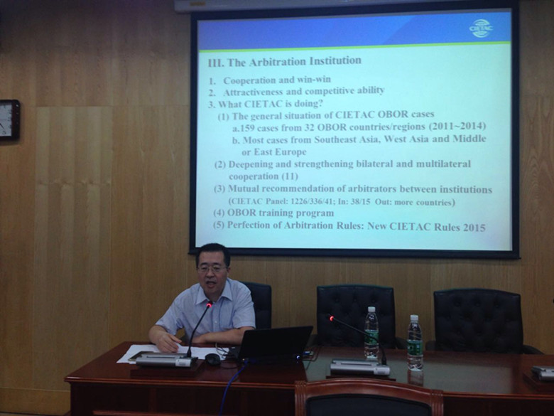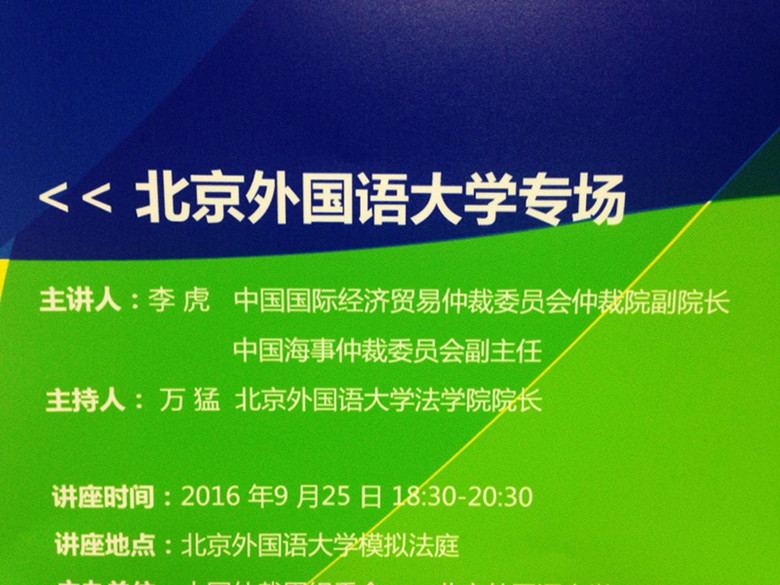 2016年9月25日星期日晚,第四届中国仲裁周国际商事仲裁系列讲座之一,在澳门信誉最好十大平台模拟法庭举行。中国国际经济贸易仲裁委员会仲裁院李虎副院长,为广大师生做了关于“一带一路与国际商事仲裁 ”的前沿讲座。北外澳门十大信誉网赌大全院长万猛教授就讲座内容作出点评,也与大家分享自己的看法和感受,澳门十大信誉网赌大全姚琦老师担任讲座主持人。