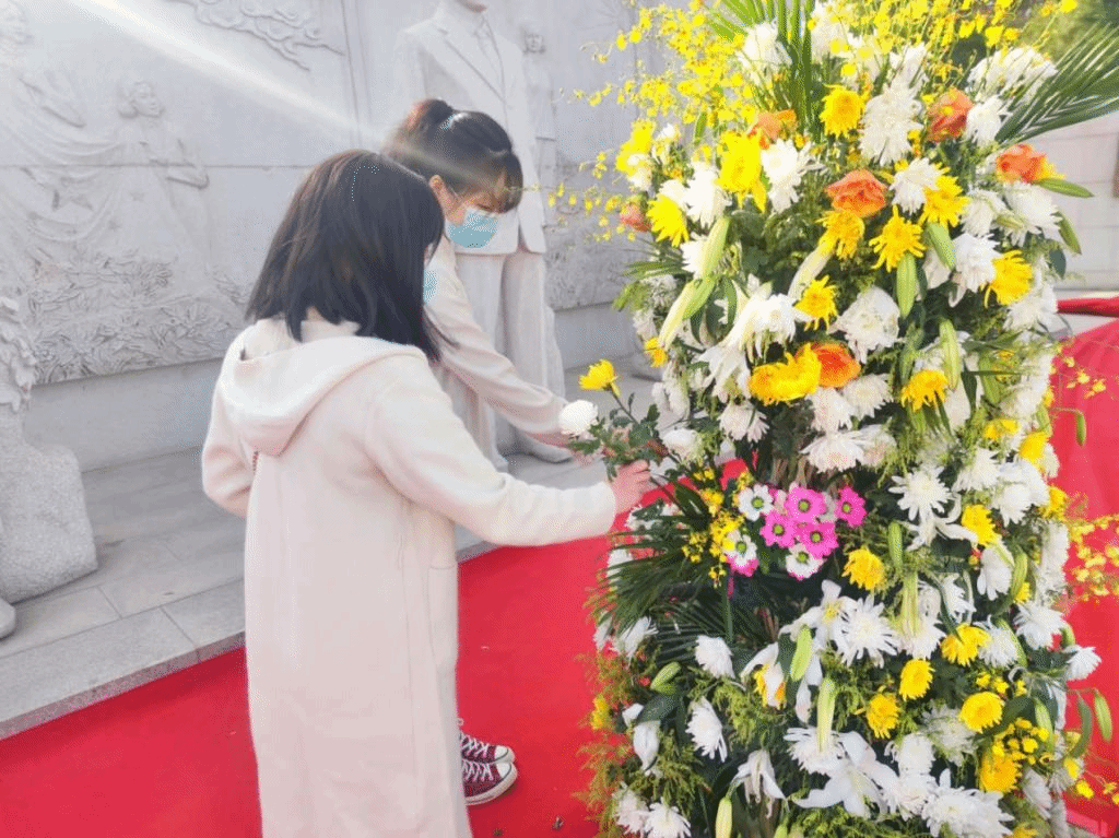 同学们通过参与线下祭奠英烈活动,缅怀为了祖国的解放和人民的安宁而英勇牺牲的战士。今日神州看奋起,陵园千古慰忠魂!在中国这方热土上,有无数仁人志士,为了民族的解放、国家的独立和人民的幸福,抛头颅、洒热血,谱写了一篇篇悲壮激越的历史篇章。是他们的生命换来了中国繁荣的今天,是他们的鲜血染红了遍地的桃花。我们怎能忘记这一段段可歌可泣的悲壮史诗?我们怎能忘记那一张张曾经鲜活的面容?“红花无情笑东风,青山有幸埋忠骨”,革命先烈们,你们为人民的利益而死,你们的死重于泰山,你们与青山同在,你们与大地永存.你们永远是我们心中的一块丰碑。