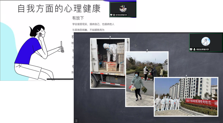 学习分享结束后,20级本科生仇怡然、19级本科生熊万方、18级本科生杨铭铭等学生骨干也交流了自己的心得体会,介绍了在核酸检测统计、健康监测报备等实践中总结的抗疫工作经验与方法。他们表示,会积极发挥学生骨干作用,通过防疫专员、权益反馈平台等渠道了解收集同学们的需求,积极与相关部门沟通联系,为校园抗击疫情做贡献。