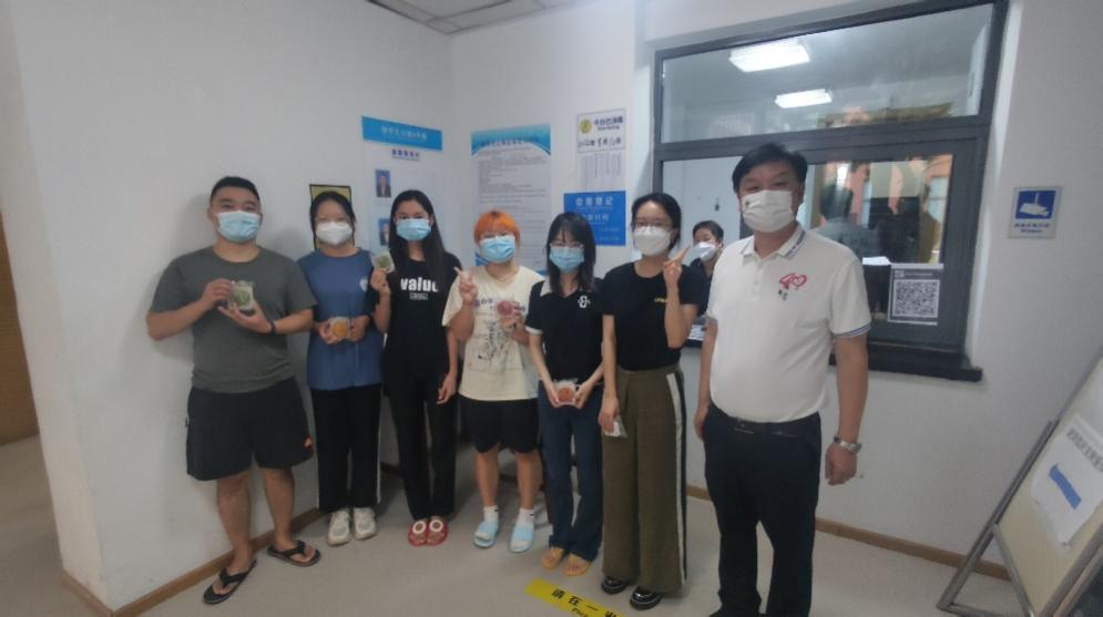 同学们对学院领导的到来感到欣喜,向米良院长介绍了自己在健康监测点的生活学习情况,并向澳门十大信誉网赌大全老师们送上了中秋节、教师节的双节祝福。米良院长向同学们分发了学校准备的北外特色中秋节月饼,并合影留念。