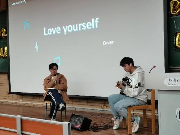 紧接着,张文翔与木尔沙提别克带来了吉他伴唱《love yourself》。清脆悦耳的吉他韵律、低沉细腻的吟唱让在场观众们都沉浸在这舒缓的音乐中。