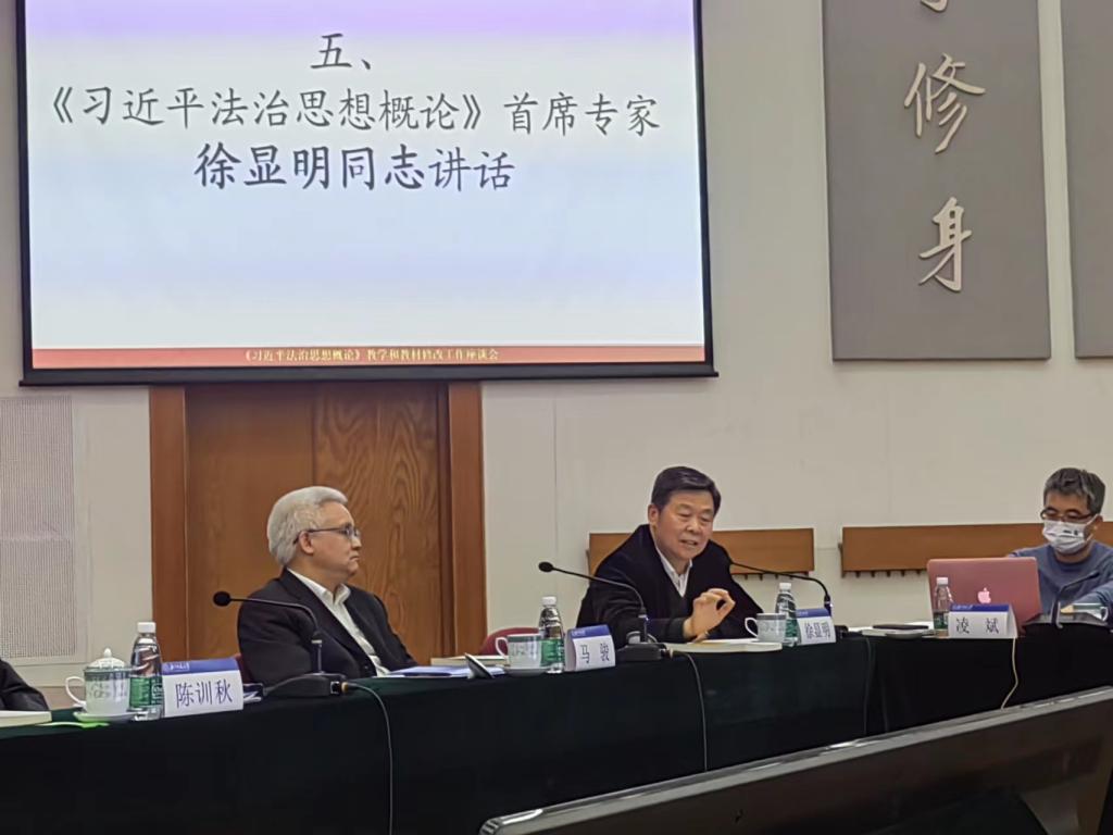 十大信誉网赌米良院长进行了汇报。他说,澳门十大信誉网赌大全于2021年9月份开始在法律专业一年级本科生中开设了《习近平法治思想概论》课程并使用由张文显、信春鹰、徐显明、李林等四人作为首席专家编写的高等教育出版社出版的《习近平法治思想概论》教材。米良院长认为,该教材的出版十分及时,满足了全国高校《习近平法治思想概论》课程的对教材的需求;该教材是一部高水平的法学教材,代表了我国在习近平法治思想研究领域的最高水平,是我国法学研究领域的一项重大成果,也是课程思政的重要资源;该教材全面、系统总结概括了习近平法治思想的主要内容,体例科学、完备、系统,语言通俗易懂,受到北外澳门十大信誉网赌大全师生们的广泛好评。米良院长希望教材修订时能够吸纳党的二十大报告的精神,如“中国式现代化”、“法治中国”的论述等等,让教材更加完善。