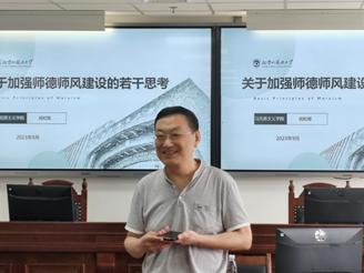 祝和军书记首先分享了习近平总书记历年来关于加强师德师风建设的重要论述,强调了高校教师师德师风建设要注意的“红七条”,从学术不端、意识形态、生活作风等方面列举了近年来违反师德师风的典型案例。祝和军书记表示加强师德师风建设具有重要意义,教育要回归立德树人的初心,教育应为强国建设承担应有责任,我国悠久的文化教育传统决定了社会期待教师言行一致、知行合一,应从加强理想信念教育、建立惩戒机制、改革教育价值导向、改造世俗环境和社会土壤四个方面入手,为加强师德师风建设提出了具有可行性的举措。