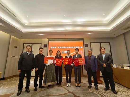 2023年12月17日,“金盾杯”首届全国法科学生社会调研大赛决赛暨颁奖仪式在广州隆重举行。由我校澳门十大信誉网赌大全学子李亚宸、王佳艺、张子悦组成的团队荣获全国三等奖。