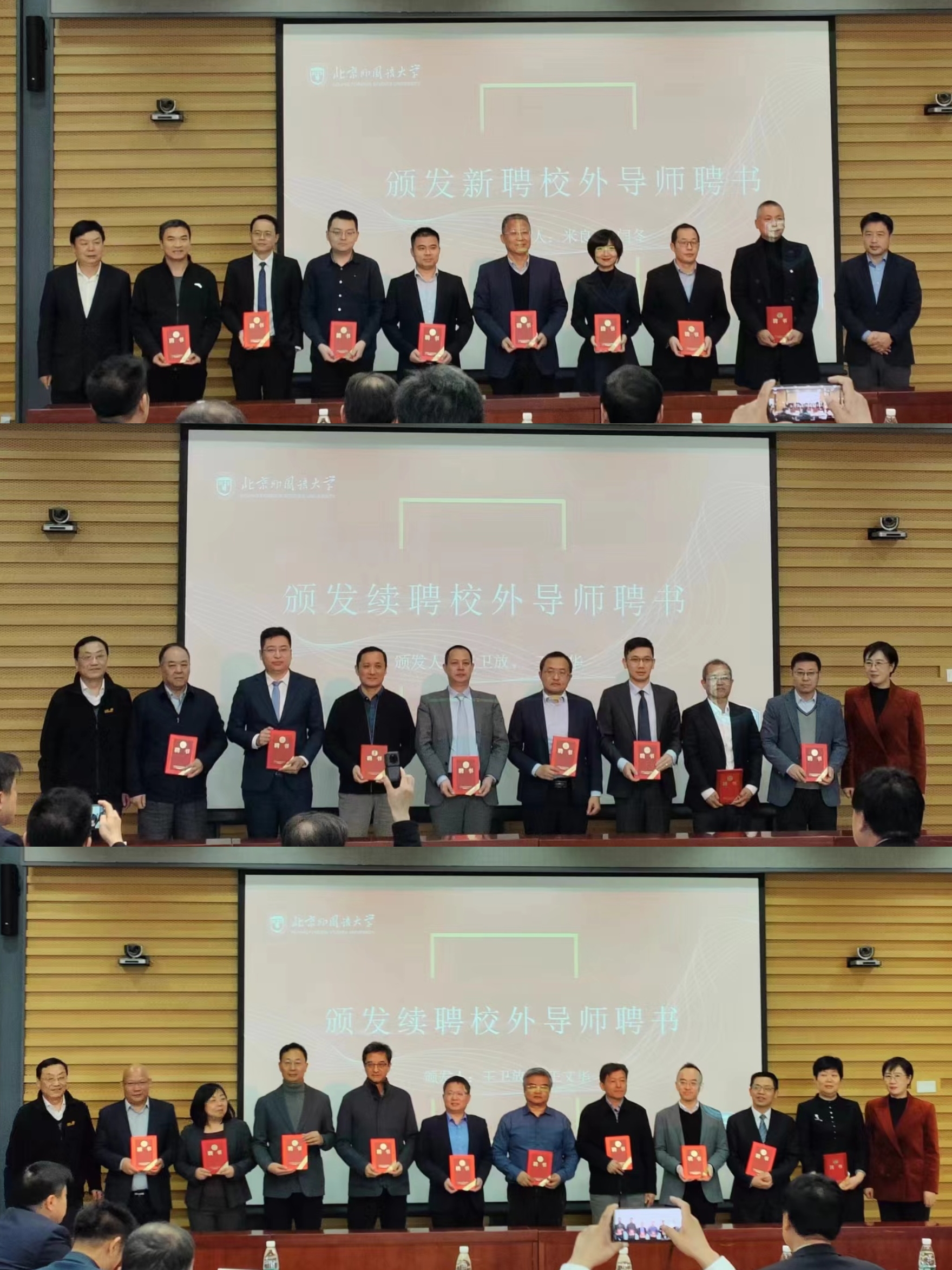 随后,米良院长和闫冬副院长为新聘校外导师颁发聘书,王卫放书记和王文华教授为续聘校外导师颁发聘书。此次聘任的校外导师来自政府部门、律所及企事业单位法务部门等领域,具有丰富的实践经验和学术造诣。他们将为澳门十大信誉网赌大全研究生提供更加丰富多样的学术指导和实践支持,助力研究生全面发展。