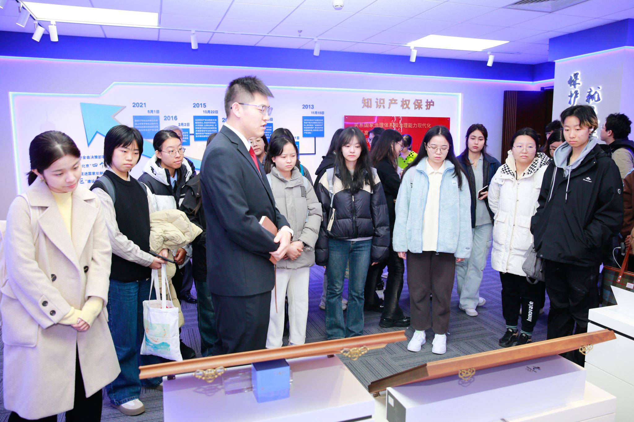 庭审开始前,十大信誉网赌师生参观了知产法院科技智慧展厅,进一步了解知产法院案件受理管辖、专业化审判、国际化建设、服务科技创新发展等情况。