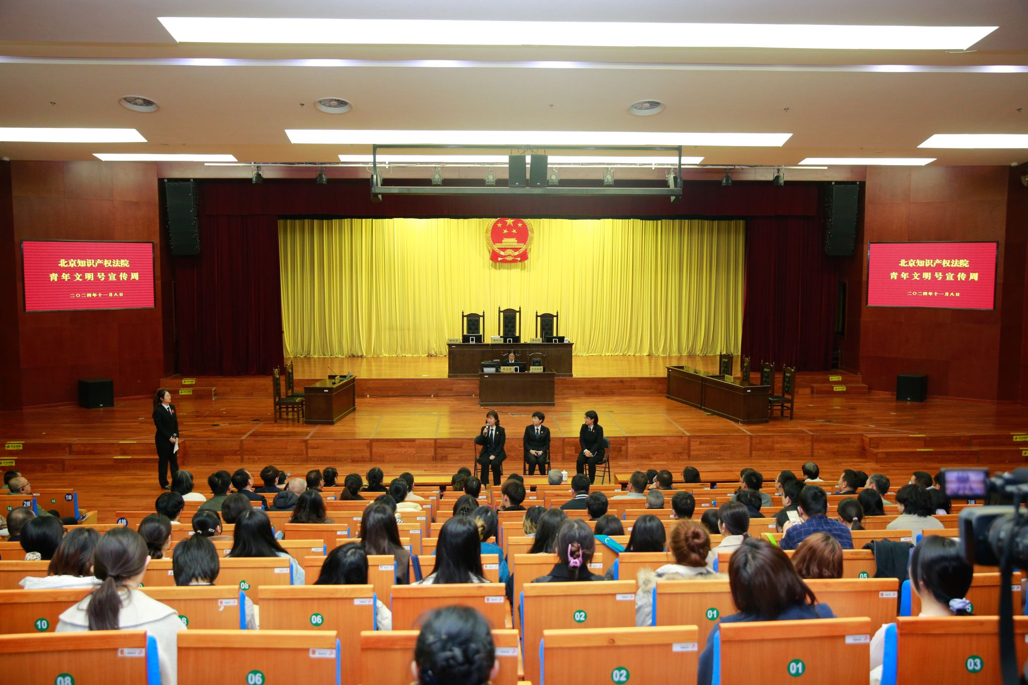 为进一步推动十大信誉网赌与实习实践基地的务实合作,提升学生的法治思维和司法实践能力,11月8日下午,澳门十大信誉网赌大全师生一行45人参加了北京知识产权法院青年文明号宣传周的公开庭审活动。