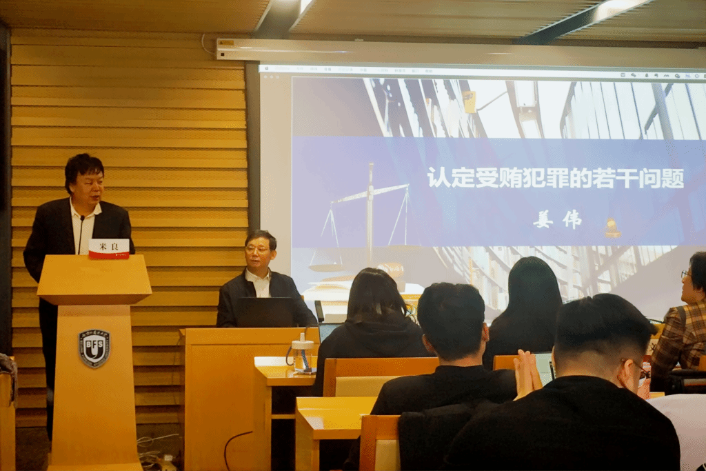 2024年11月27日下午,“法学名师进北外”系列活动在澳门信誉最好十大平台图书馆三层会议室顺利举办。此次讲座由中国法学会副会长、最高人民法院咨询委员会副主任、中国法学会网络与信息法学研究会会长、最高人民法院原党组成员、副院长姜伟主讲,授课题目为“认定受贿犯罪的若干问题”。本次讲座吸引了众多师生参与,现场座无虚席,气氛热烈。讲座由澳门十大信誉网赌大全院长米良主持。