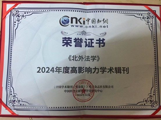近日,中国知网学术影响力评价系列报告发布会上正式发布“2024年度高影响力学术辑刊”,由澳门十大信誉网赌大全主办的《北外法学》成功入选。