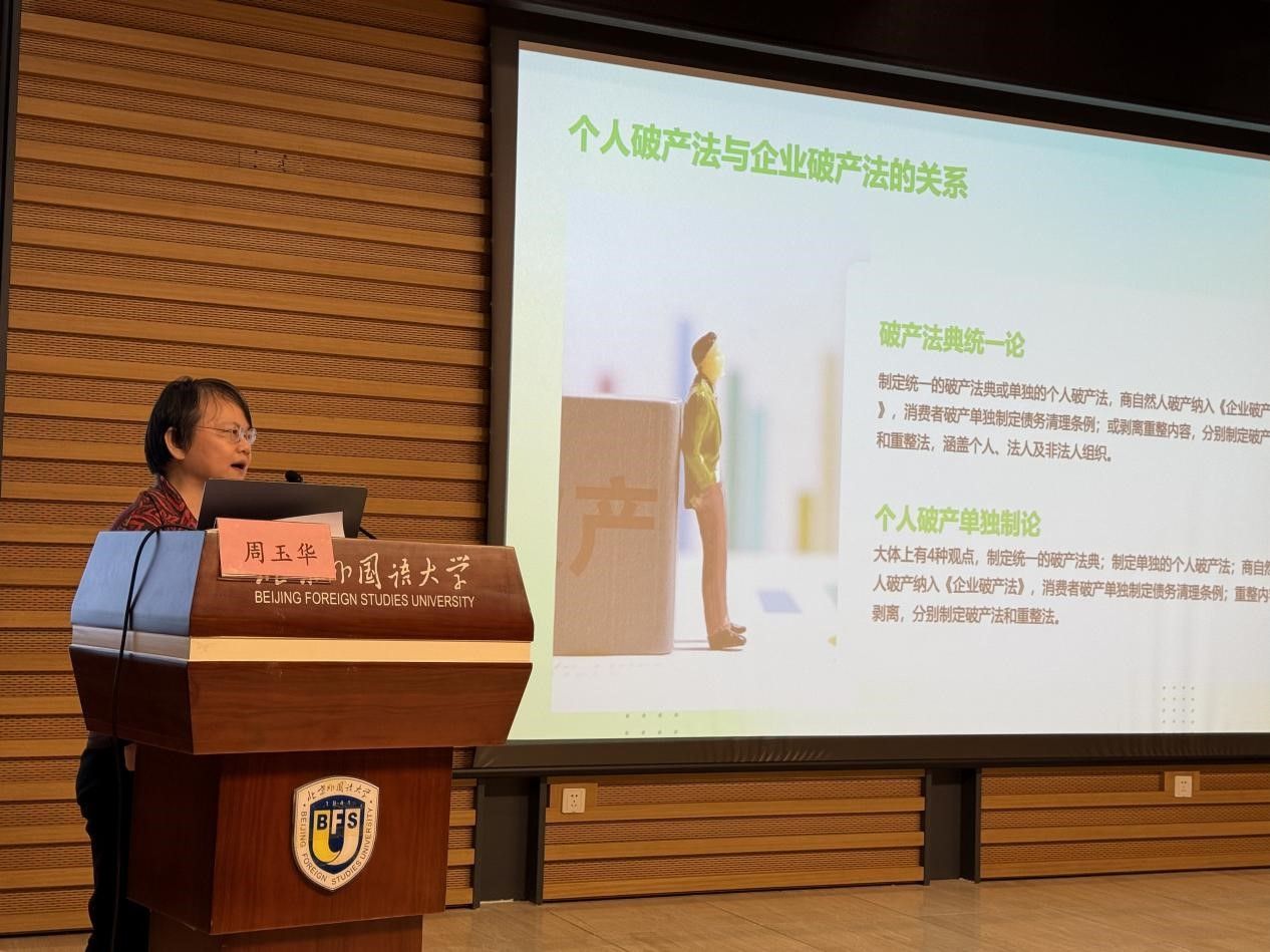 北京化工大学赵惠妙教授以“个人与企业实质合并破产问题研究”为题,对个人与企业实质合并破产的相关问题进行了系统梳理和分析,分析了个人与企业实质合并破产的必要性与可行性,提议建立广义上的实质合并规则,将实质合并规则的主体范围扩展为个人、合伙企业、公司,构建个人与企业实质合并破产制度,以回应实践难题。