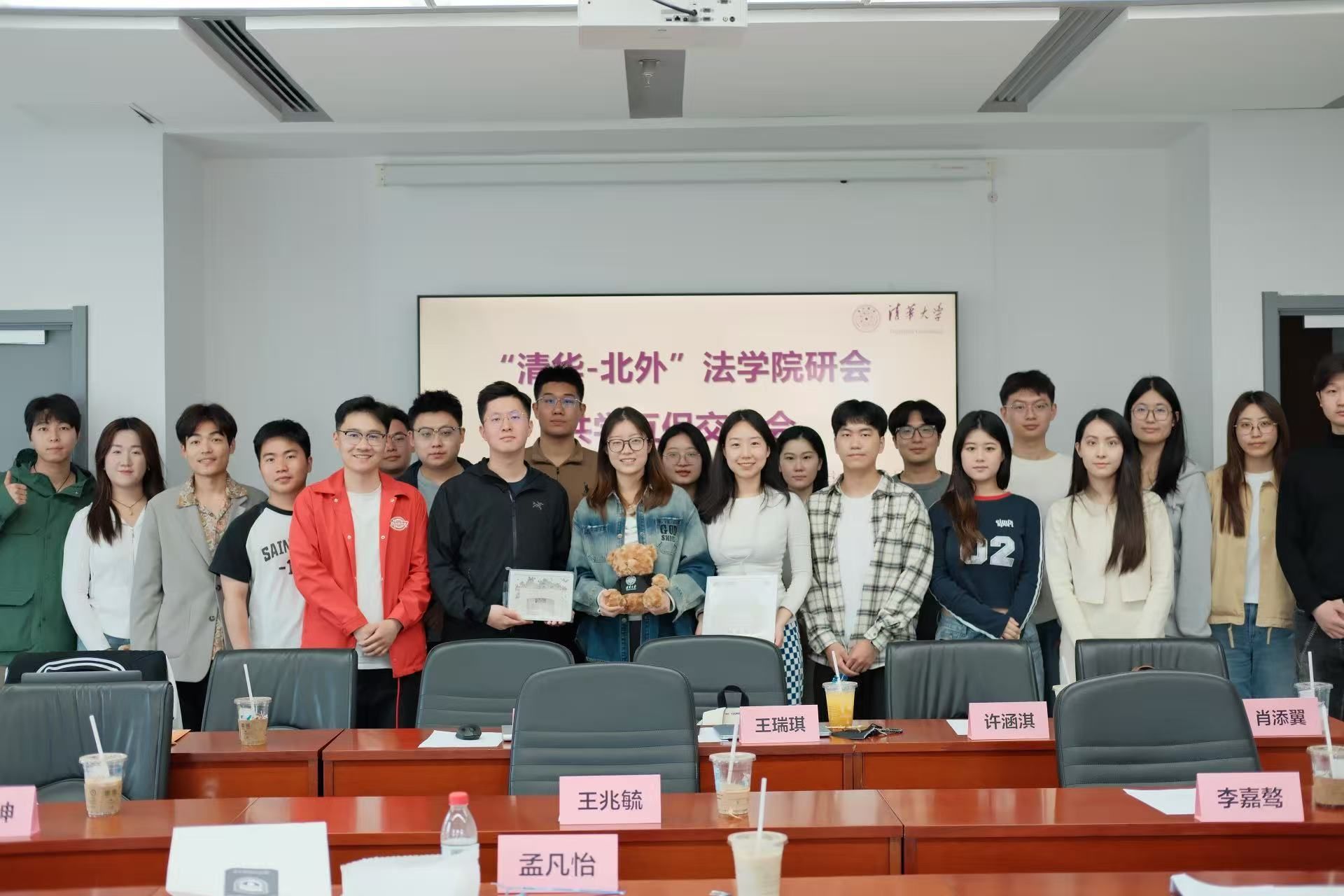 交流会在热烈友好的氛围中圆满结束,清华澳门十大信誉网赌大全研会与十大信誉网赌研会互赠纪念品并合影留念。此次交流为两院未来的深入合作奠定了坚实基础,双方将持续加强在学术、文体、职业发展等领域学生活动方面的合作,共同推动法学研究生学生活动的优化与发展。