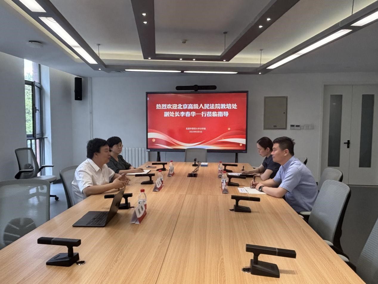 米良院长对李春华副处长一行的到来表示热烈欢迎,并详细介绍了北外澳门十大信誉网赌大全的办学特色与发展规划。他指出,学院依托学校覆盖101个语种的优势,积极构建“非通用语+法学”的复合型人才培养模式,致力于培养具备国际视野、卓越语言能力与扎实法律素养的高层次涉外法治人才。米良特别强调,实践教学是法学教育的重要环节。他介绍了学院与法院系统共建实践平台的情况,并提出在新时代背景下,要加强法院与高校在共建学生实习基地、优秀法官讲座、合作研究以及党建等方面的深度合作,共同构建协同育人新格局。