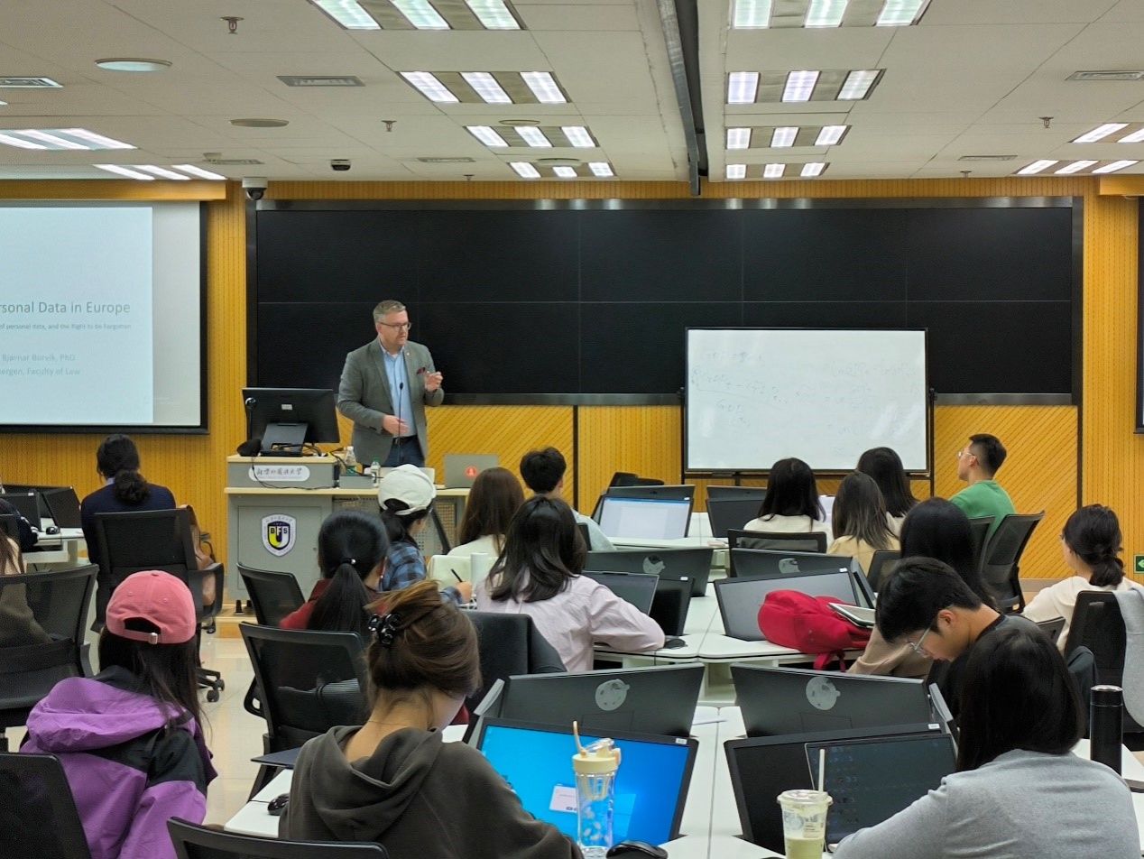 随后,Bjørnar Borvik 教授为十大信誉网赌师生带来题为《欧洲个人数据保护 —— 个人数据处理的合法基础(同意)与被遗忘权》的专题讲座。本次讲座由十大信誉网赌院长丁相顺教授主持,现场师生围绕欧盟和挪威数据保护法律体系展开深入交流,共有100多名北外学生注册参会,讲座气氛热烈。