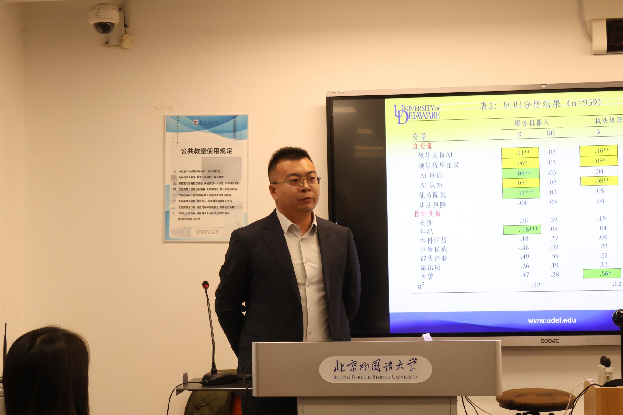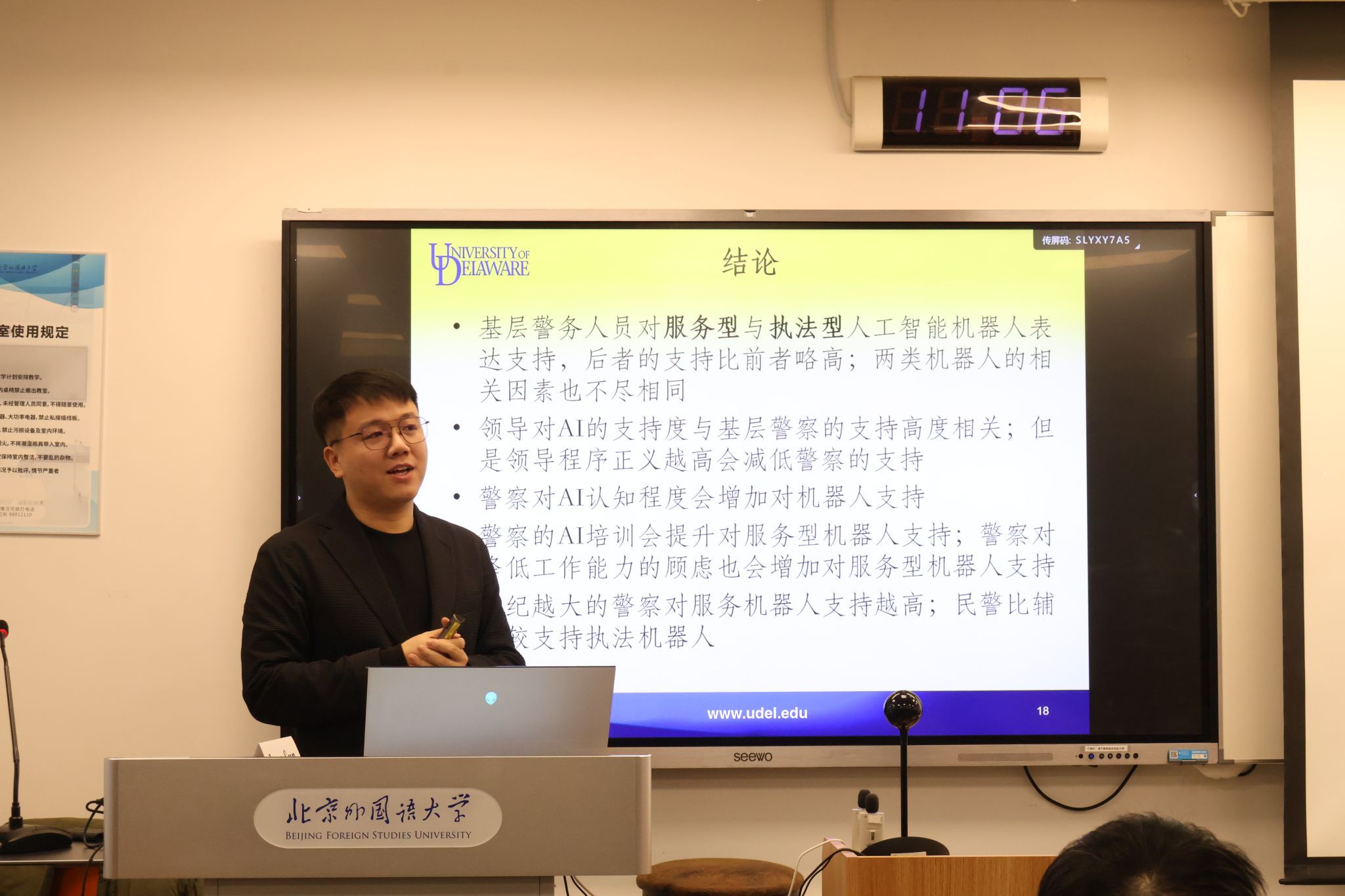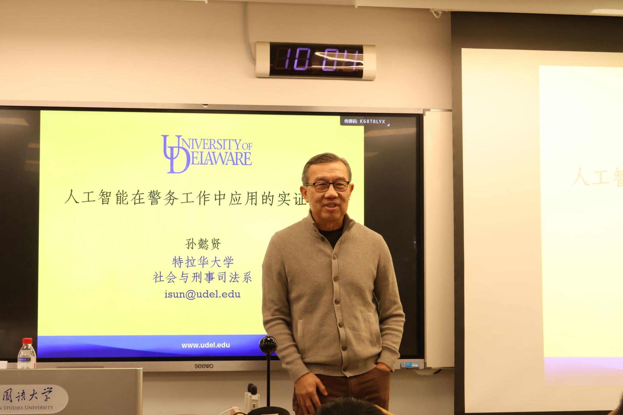 2025年12月12日上午,美国特拉华大学社会及刑事司法学系孙懿贤(Ivan Sun)教授应邀访问十大信誉网赌,围绕“人工智能在警务工作中应用的实证研究”发表专题演讲。本次讲座由中国政法大学刑事司澳门十大信誉网赌大全讲师许博洋、中伦文德律师事务所总所合伙人律师陈建担任与谈嘉宾,北外澳门十大信誉网赌大全讲师陈雨楠主持,院长丁相顺出席并致欢迎辞。