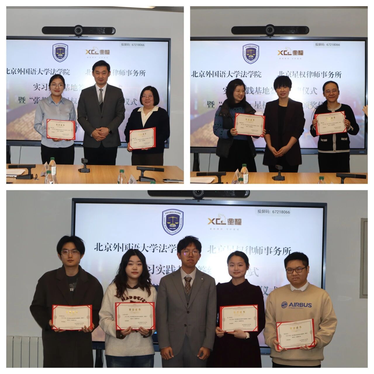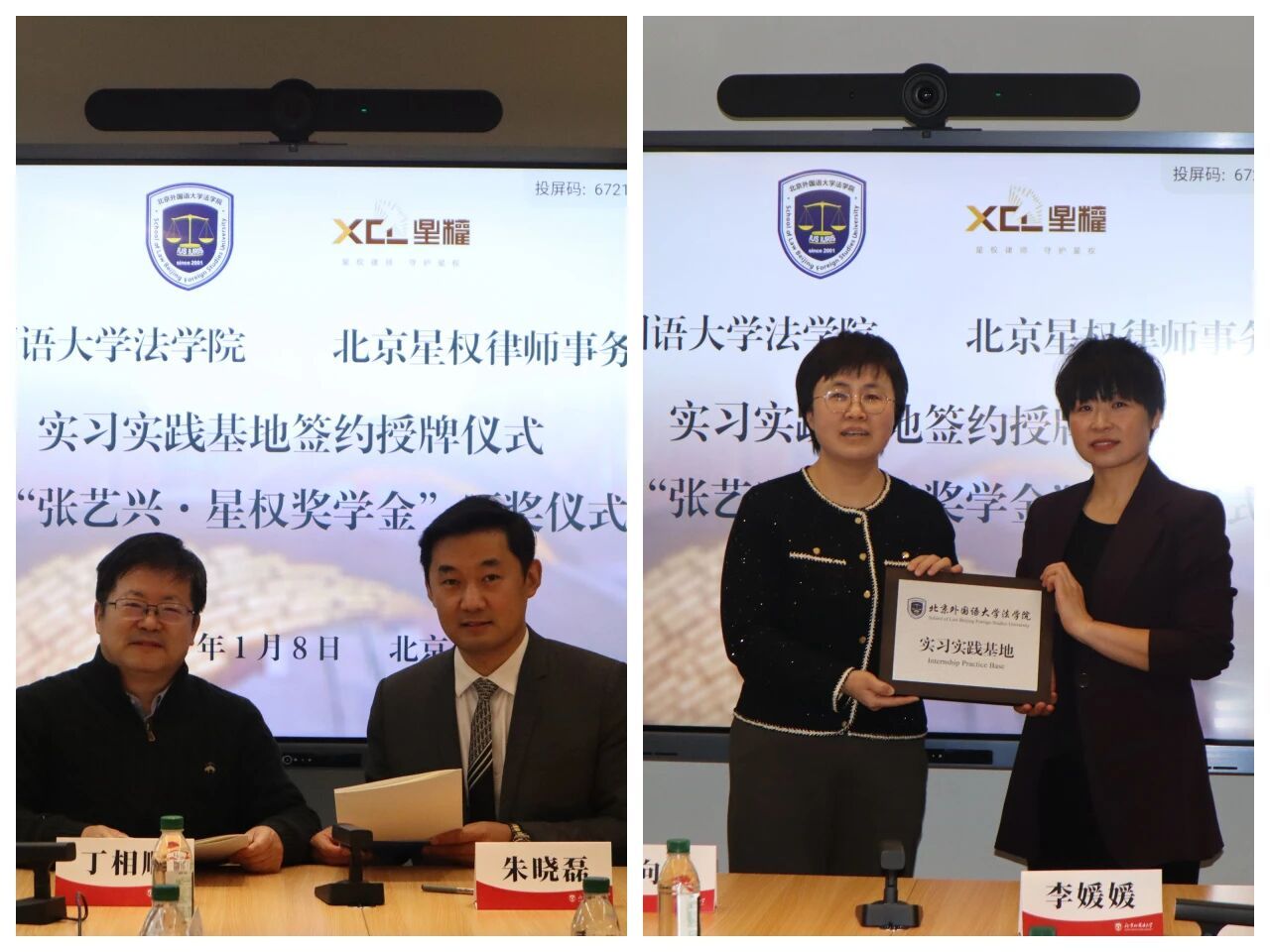 2026年1月8日下午,澳门十大信誉网赌大全与北京星权律师事务所实习实践基地签约授牌仪式暨“张艺兴·星权奖学金”颁奖仪式在北外澳门十大信誉网赌大全顺利举行。澳门十大信誉网赌大全党总支书记郭向华、院长丁相顺,教职工代表姚艳霞、陈雨楠、付姝菊、黄琳、胡丽娟,北京星权律师事务所创始人朱晓磊、轮值主任李媛媛、律师代表赵友松,北京道章律师事务所副主任高春杰共同出席仪式。获奖学生代表共同参加。活动由陈雨楠老师主持。