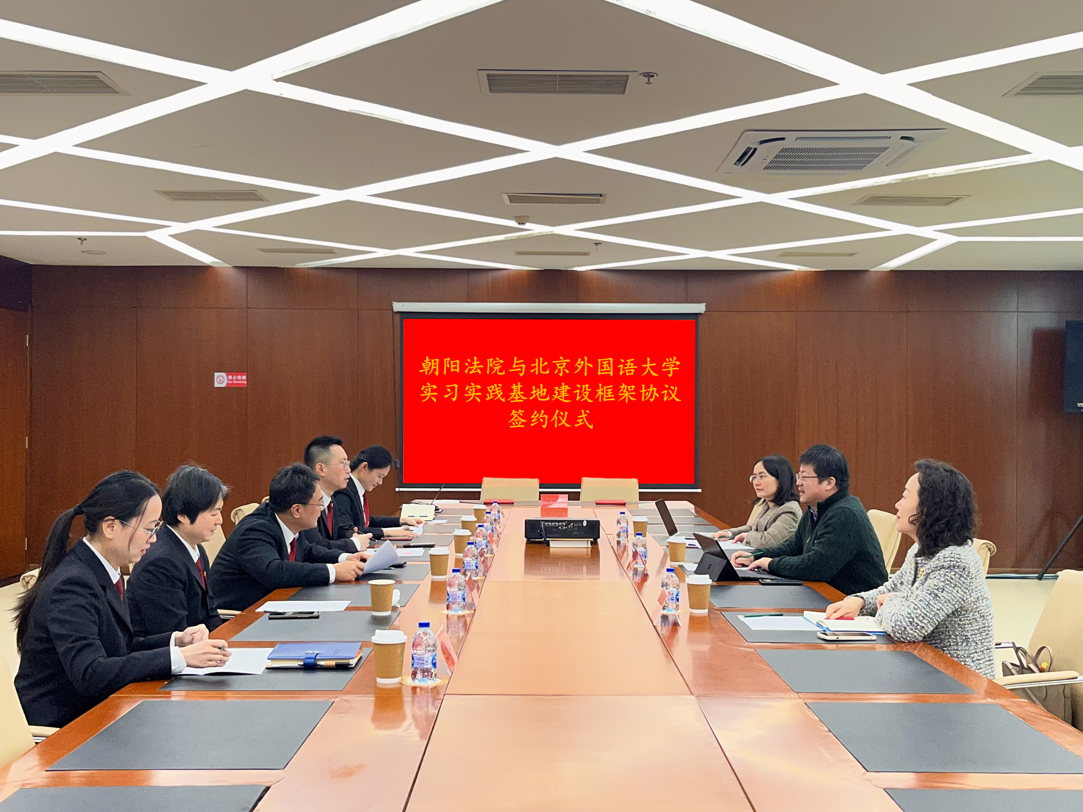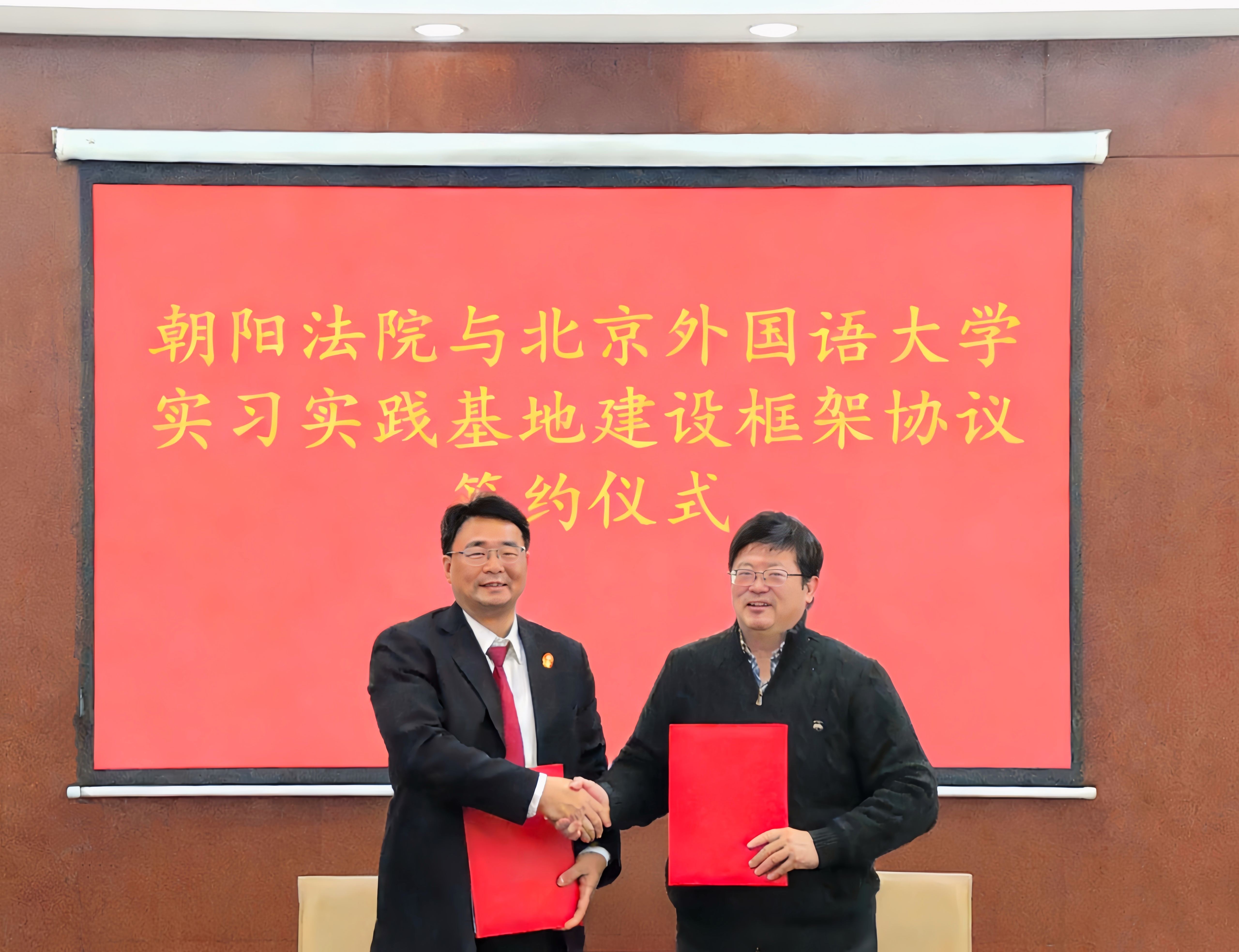 2026年1月20日上午,澳门十大信誉网赌大全与北京市朝阳区人民法院奥运村人民法庭实习实践基地建设框架协议签约仪式在朝阳区人民法院奥运村人民法庭顺利举行。朝阳法院党组副书记、副院长王国才与澳门十大信誉网赌大全院长丁相顺共同签署《实习实践基地建设框架协议》,朝阳法院副院长李丹,奥运村人民法庭庭长白星晖、副庭长张琦、法官毛文蝶、法官助理钟原,北外澳门十大信誉网赌大全副教授安柯颖、团总支书记刘时剑等出席签约仪式。