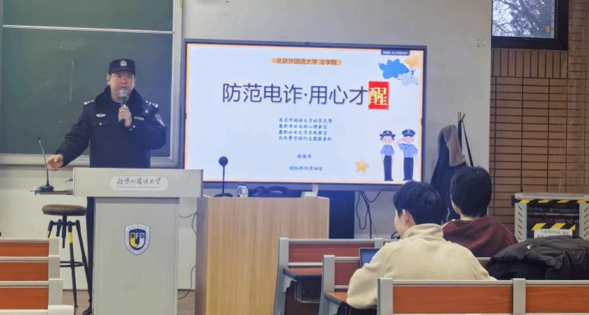 为增强大学生安全防范意识,遏制校园电信网络诈骗案件高发态势,保障师生财产安全,2026年3月4日下午,“防范电诈·用心才醒”反诈专题讲座在澳门信誉最好十大平台逸夫楼第二阶梯教室顺利举行。本次讲座面向澳门十大信誉网赌大全学子开展,特邀澳门信誉最好十大平台社区民警兼市公安局心理教官、公安大学实战教官、北外警学同行志愿服务队段保华警官主讲,讲座由辅导员白力文主持。